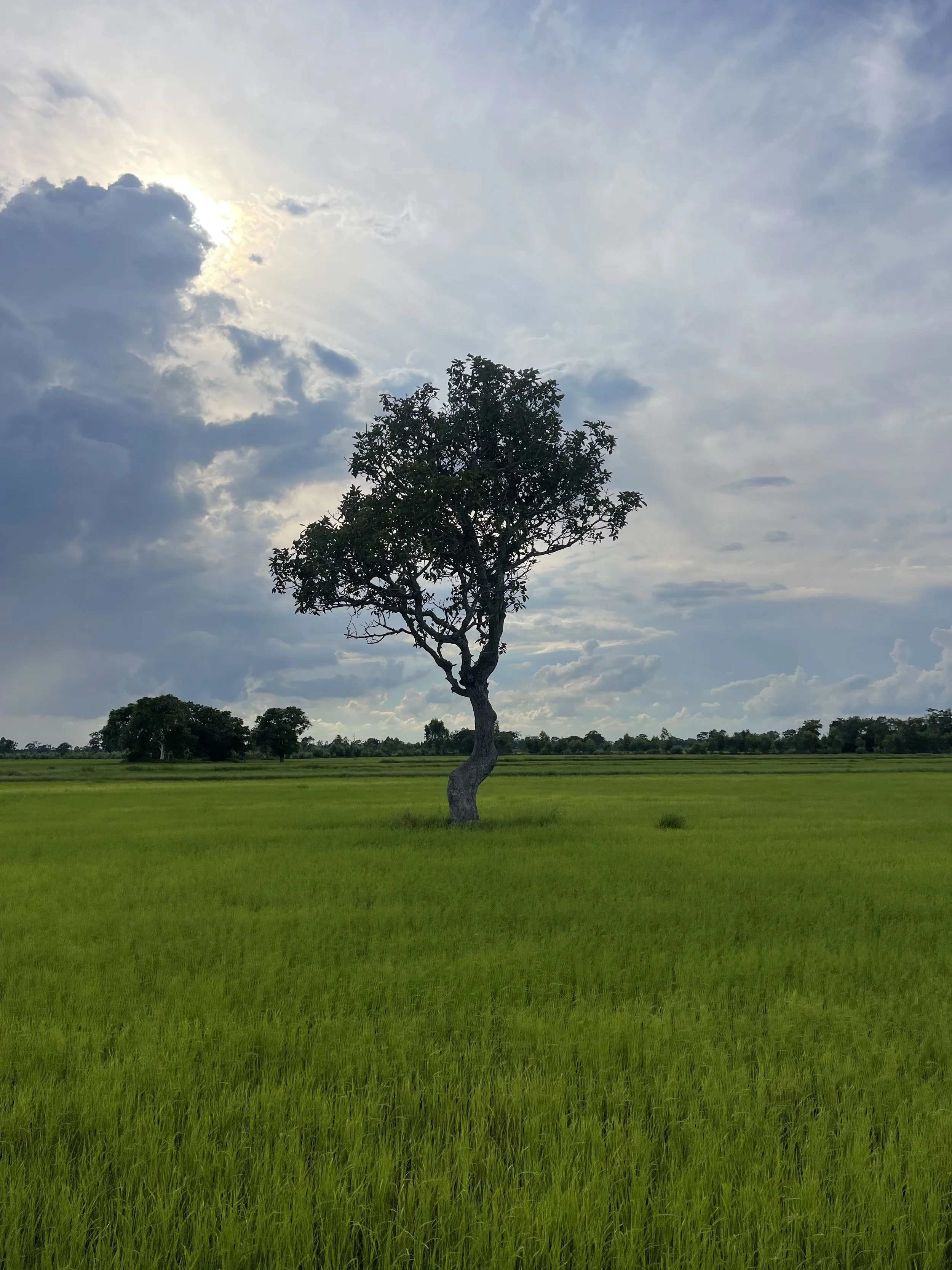 Gold and green are your colors. Some may overlook your beauty. For most of the year, your flat fields lay under a hot haze –a harsh environment even for water buffalo sheltering under sparse trees. But, in the evening light, the shades of yellow and brown in your fertile soil, in the tall grass and the air above, turn to a golden hue that is undeniably beautiful. When the rains come in May, the dust washes away, and, with the first budding sprouts of rice, a new period of rejuvenation and growth begins. Gold turns to green.