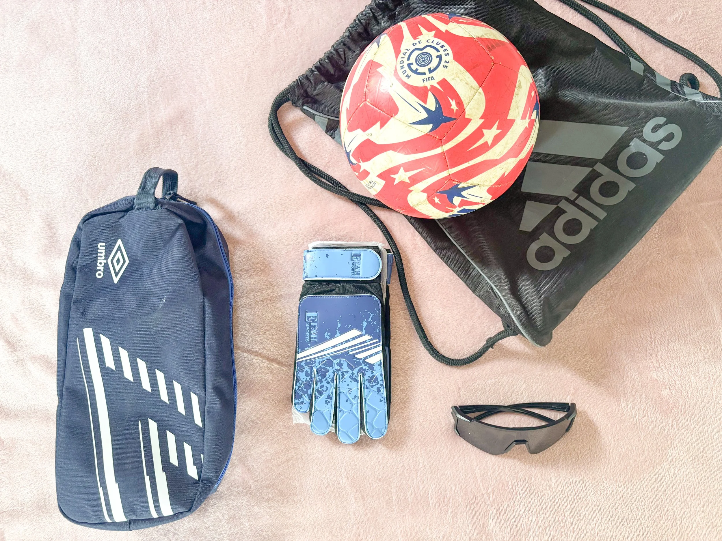 This one is more simple, but I thought I’d showcase it anyway! My cleats are more than 8 years old, so I felt it necessary to contain the unfortunate smell that comes with them in their own, dedicated boot bag. I also have a pair of goalie gloves available and my emotional support soccer ball ready for use. Not pictured are the litres of water I consume to stay hydrated!