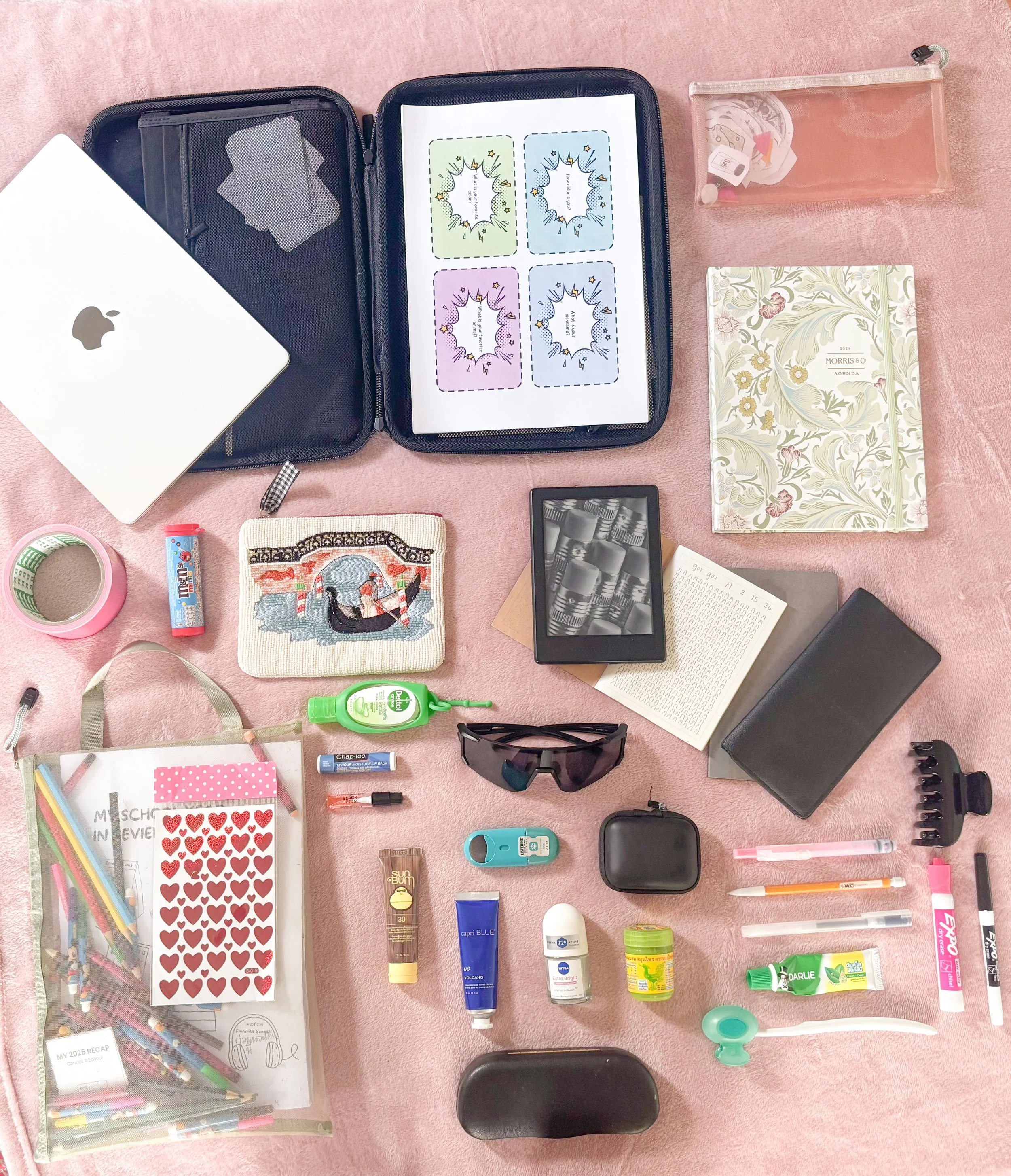 Last but not least: my laptop!! I also got this hard shell case from MUJI, and it is perfect for days when I just bring my computer and can feel safe placing it in my basket. It even has pockets, great for storing (more) flashcards and worksheets.