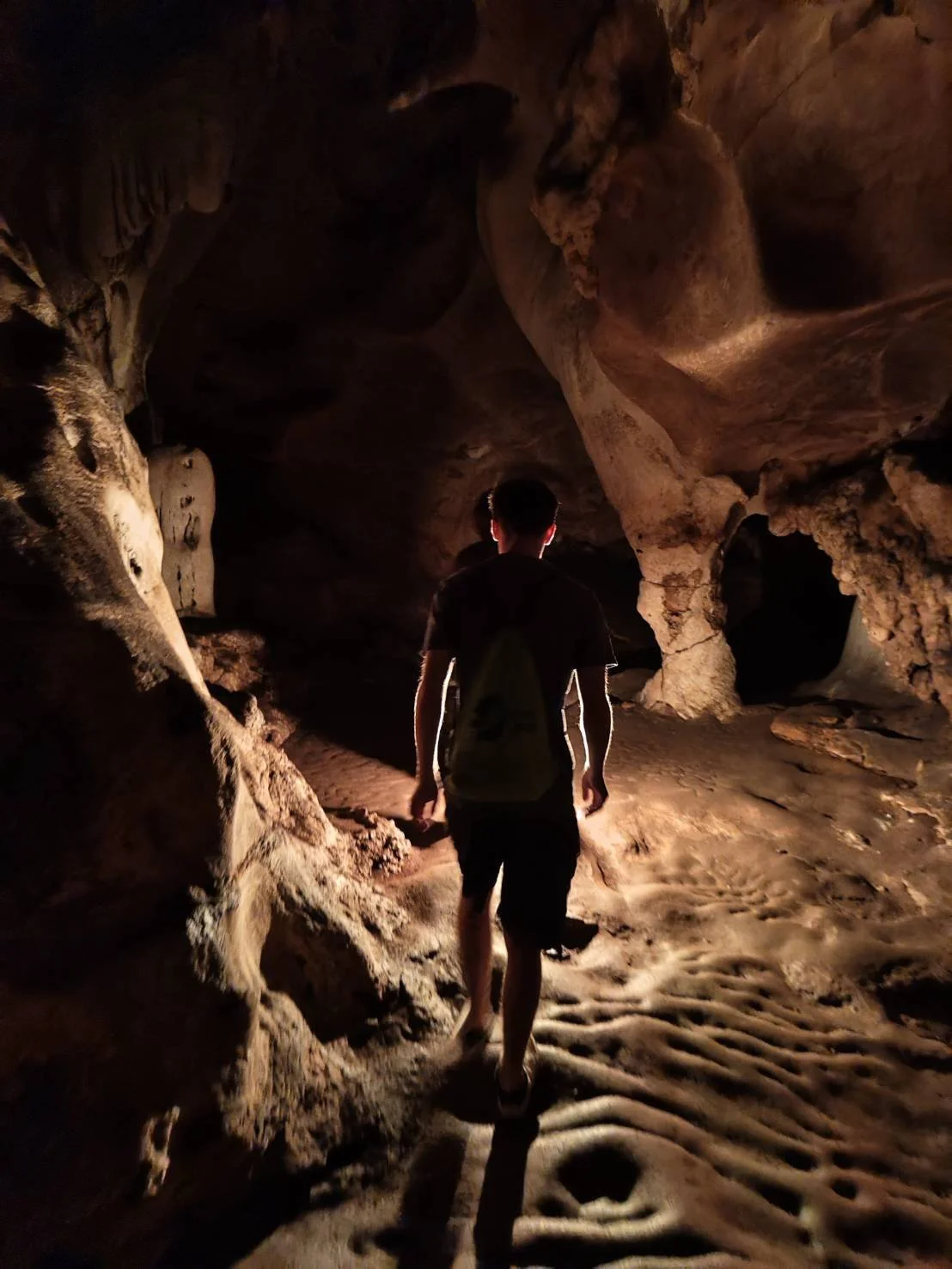 After the shrine, the path then leads you deeper into the cave. There is an optional trek deeper into another section of the cave. However, this optional path requires an experienced tour guide and a little extra money. Tour guides are volunteers so the fee supports the local community. Our tour guide had 20 years of experience. With my current A-jaan accompanying me, he seized on the opportunity for me to practice my Thai skills with our tour guide. There are no artificial lights in this part of the cave and gas lanterns are carried to illuminate your path and our guide pointed out the bats that reside here. She also identified the stalagmites and other formations that are said to resemble important Thai cultural symbols, such as elephants. There are also some areas that require you to climb and semi-crawl through to get to the other side. Quite the adventure!